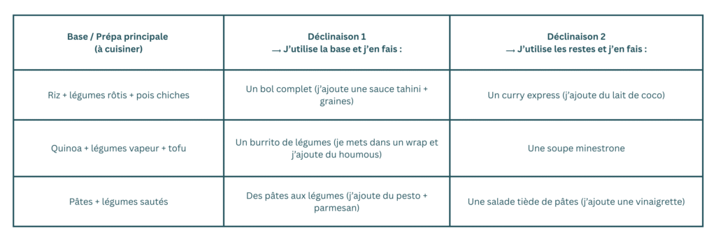 💡 Astuce : cuisiner une recette “triple usage” te permet de transformer les restes en 2 ou 3 plats différents sur la semaine.